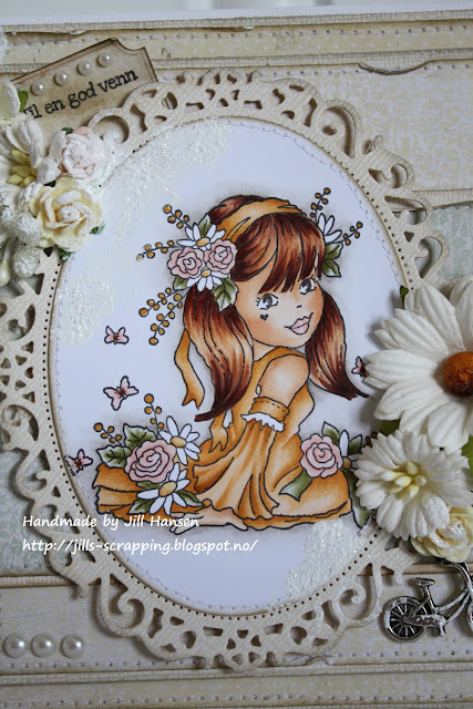 Helt fantastisk Jill. Så nydelig hun ble i gult med mørkt hår. Jeg liker farge valget ditt. Nydelig kort i nydelige Maja papirer.